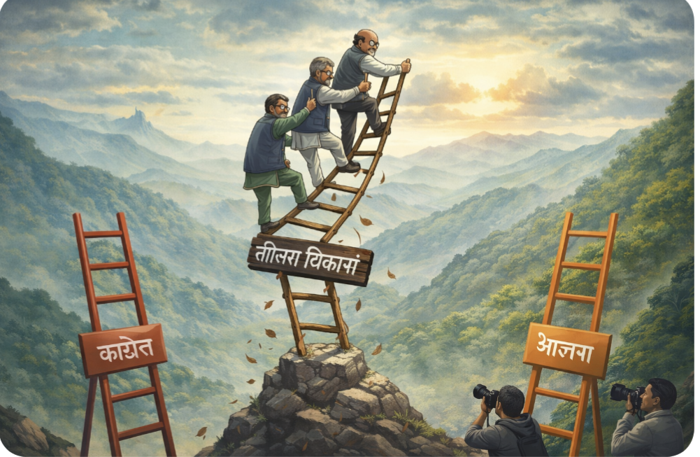 आज परिस्थितियां एक बार फिर बहस को जन्म दे रही हैं। भाजपा के भीतर उभरती तीखी अंतर्कलह और कांग्रेस की आंतरिक खींचतान ने उन नेताओं में नई उम्मीद जगाई है जो दोनों दलों के भीतर हाशिए पर चले गए हैं। ऐसे कई चेहरे फिर “तीसरे विकल्प” की सीढ़ी उठाकर सत्ता के शिखर तक पहुंचने का सपना देखने  लगे हैं। अपनी खबरों की तलाश में  थका हारा मीडिया भी  थकान को उतारने के उनके सपनों को सुर्खियों देकर उसी सीढ़ी का सहारा  ले रहा है।